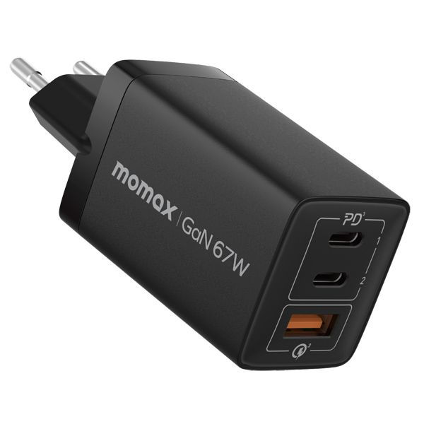 Momax OnePlug 67W 3 Portlu Gan Duvar Şarj Cihazı Adaptör Siyah